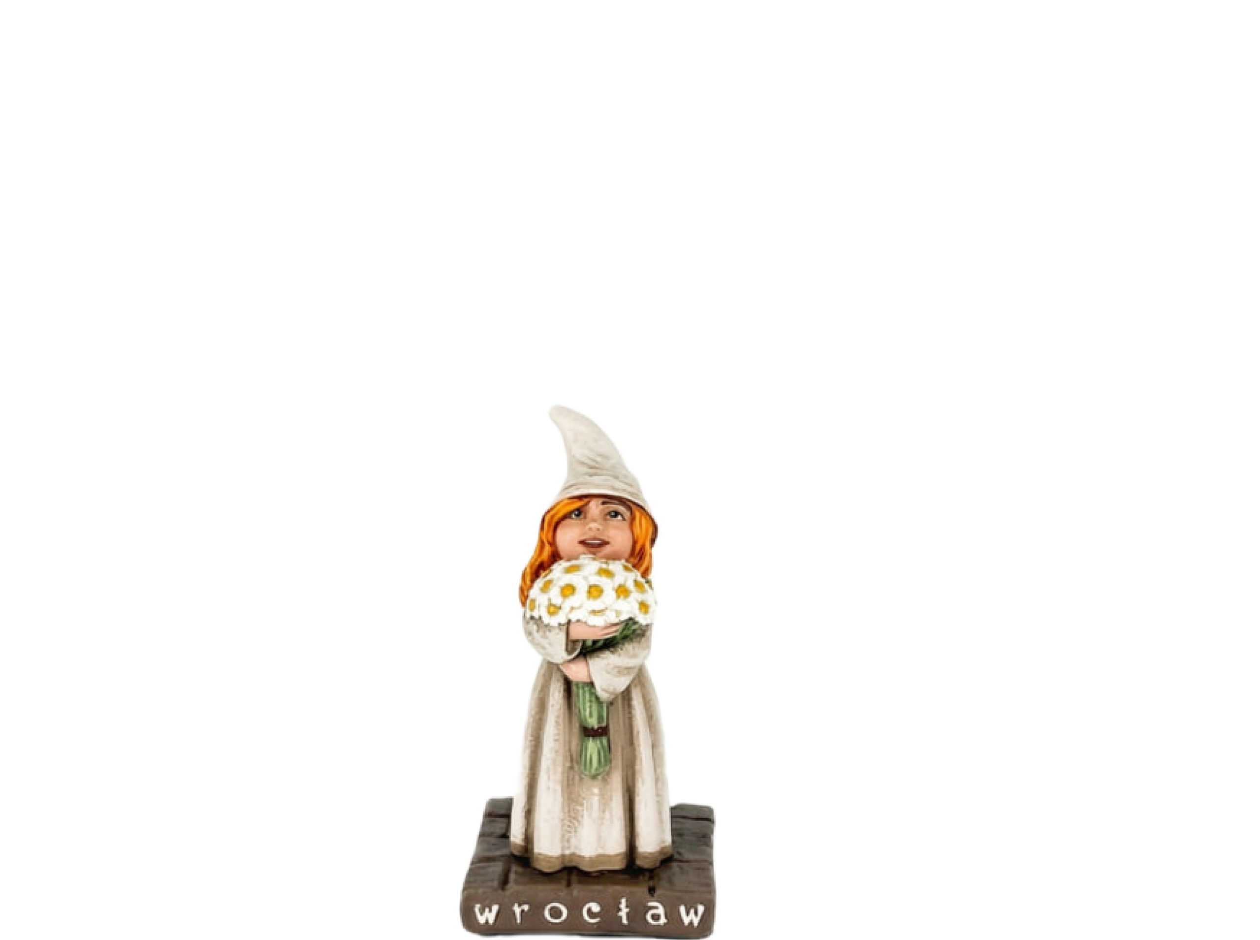 Wiele osób trafia do nas, wpisując w wyszukiwarkę hasła takie jak sklep z pamiątkami Wrocław czy gdzie kupić krasnala we Wrocławiu. Dziewczynka z kwiatami 010 odpowiada na tę potrzebę, bo jest konkretna: znane wymiary, znana waga i wyraźny motyw, który nie wymaga dodatkowego tłumaczenia. To również świetny element większej kolekcji – obok bardziej „charakternych” figurek doda lekkości i równowagi. Jeśli chcesz mieć w domu mały znak rozpoznawczy miasta, ta pamiątka z Wrocławia robi to dyskretnie i z klasą.