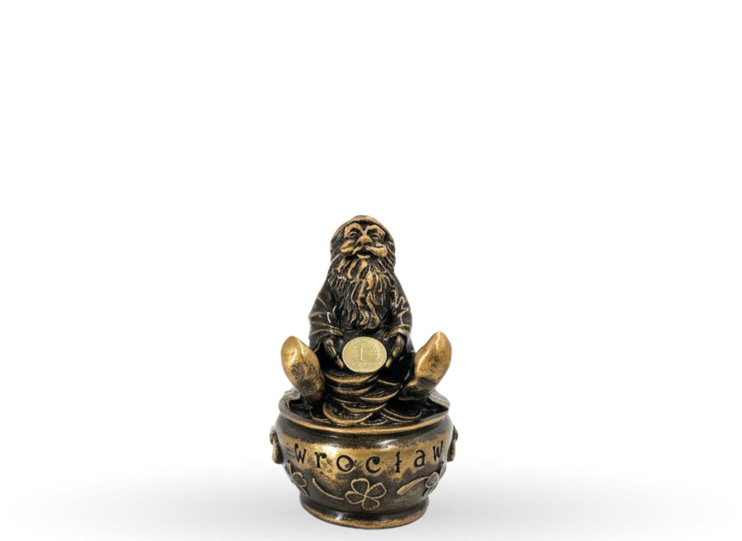 Wrocław to miasto, w którym „małe” bywa wielkie. Rytm Rynku, mosty nad Odrą, zaułki prowadzące na Ostrów Tumski – między tymi miejscami toczy się codzienna opowieść o życzliwości. Krasnale wrocławskie wpisują się w nią od lat: dyskretne, ale widoczne, podpowiadają, żeby dostrzegać drobne powody do uśmiechu. „Groszyk” przenosi ten klimat do wnętrza. Jako pamiątka z Wrocławia nie wymaga podpisów ani mapy – wystarczy, że stanie obok pocztówki znad Odry czy biletu z Twojej trasy. Wtedy najprostszy gest nabiera znaczenia, a półka z pamiątkami zaczyna „opowiadać” bez słów.